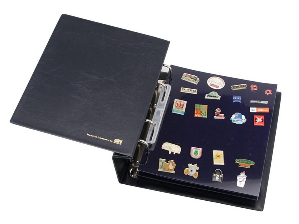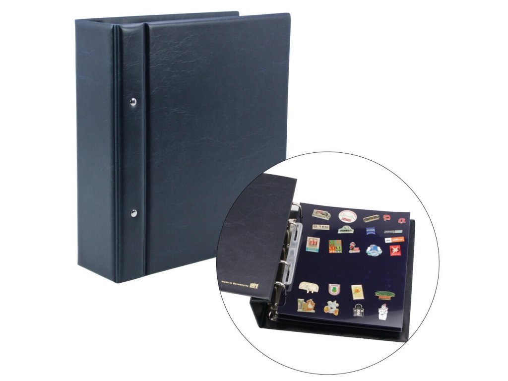 - Tmavě modré album s velkou kapacitou – ideální pro sbírku pinů.