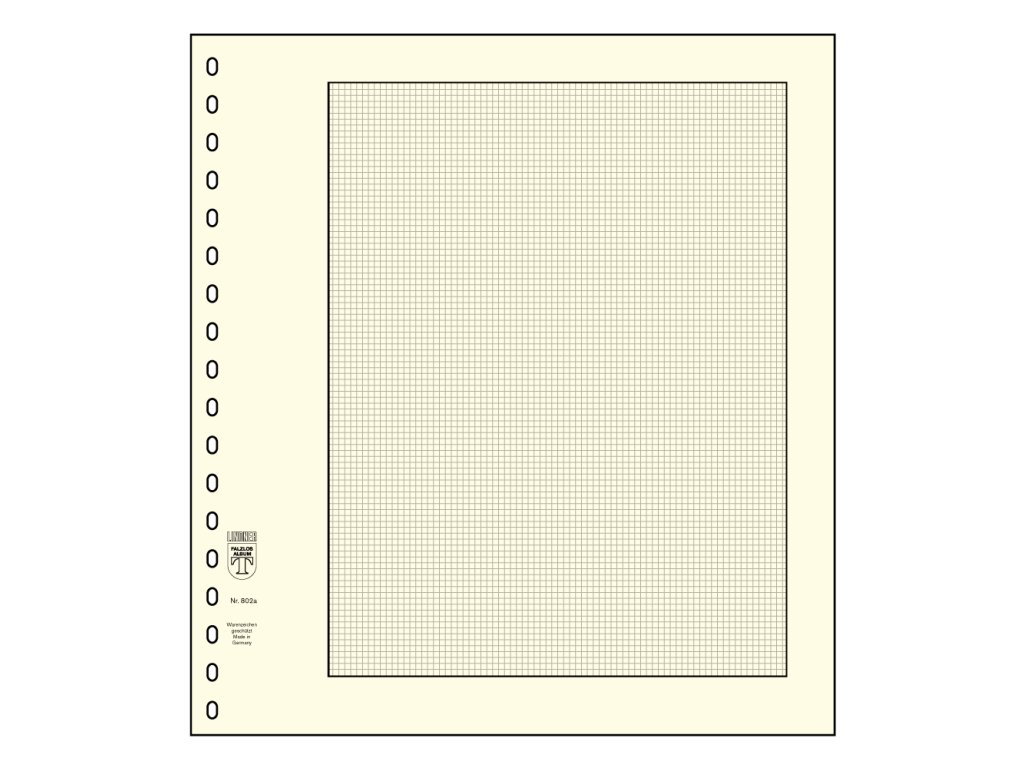 LINDNER albový karton (200 g/m²) s natištěným černým rámečkem (250 × 193 mm) a stříbrošedým podtiskem s jemnou mřížkou.