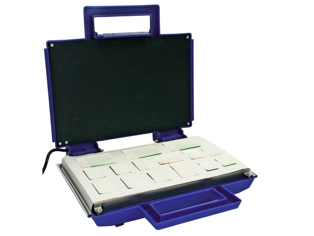 Elektrický lis SAFEpress suší odlepené známky neuvěřitelně rychle a zároveň je šetrně vyhlazuje.