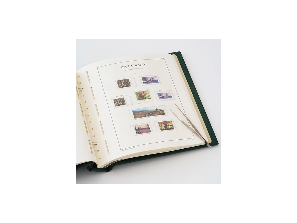 Albové listy LEUCHTTURM (formát 270 x 297 mm/ 13-děrový systém) jsou tištěny detailním černobílým ofsetovým tiskem na trvanlivém a odolném pevném papíru (gramáž 170 g/m2 ). Záměrně upouštíme od barevného tisku. Slouží to jako vodítko, abyste na první pohled viděli, které známky vám ještě chybí. Na albové listy jsou nalepeny hawidky z křišťálově čiré antireflexní polystyrenové fólie bez změkčovadel ve velikosti předtištěné známky. Ochranné kapsy drží známky přesně na místě a zabraňují jejich slepení. Současně také poskytují optimální ochranu před prachem a poškozením.