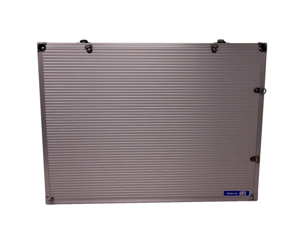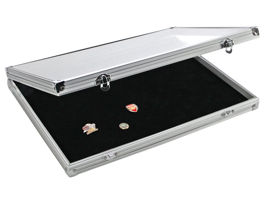 Elegantní vitrína s hliníkovým rámem a průhledným výklopným víkem, která poskytuje vaší sbírce reprezentativní vzhled a zároveň bezpečné uložení.