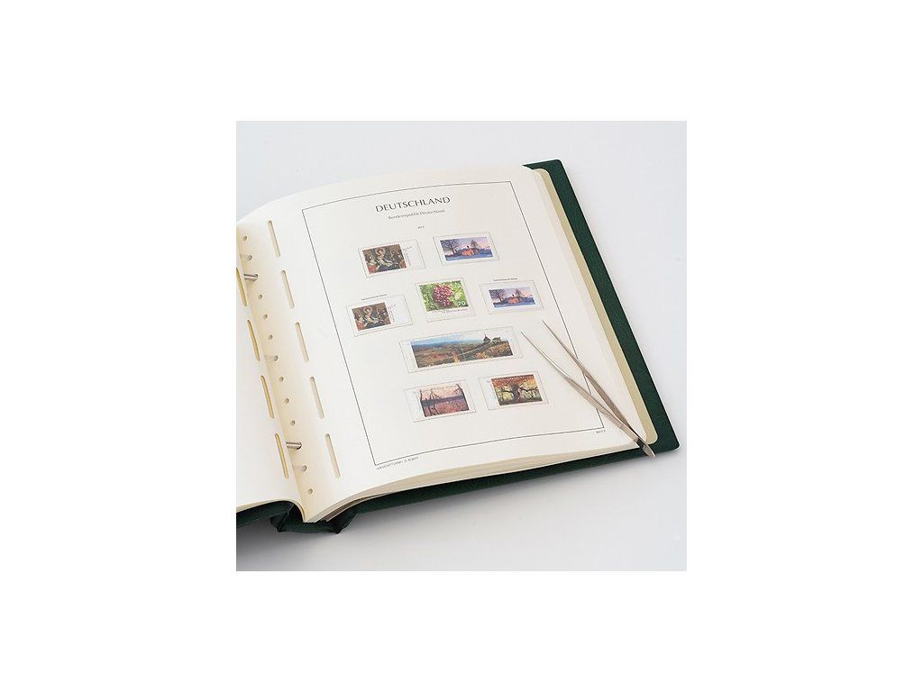 Albové listy LEUCHTTURM (formát 270 x 297 mm/ 13-děrový systém) jsou tištěny detailním černobílým ofsetovým tiskem na trvanlivém a odolném pevném papíru (gramáž 170 g/m2 ). Záměrně upouštíme od barevného tisku. Slouží to jako vodítko, abyste na první pohled viděli, které známky vám ještě chybí. Na albové listy jsou nalepeny hawidky z křišťálově čiré antireflexní polystyrenové fólie bez změkčovadel ve velikosti předtištěné známky. Ochranné kapsy drží známky přesně na místě a zabraňují jejich slepení. Současně také poskytují optimální ochranu před prachem a poškozením.